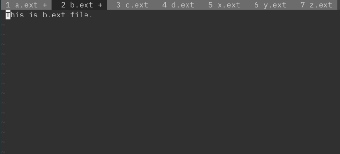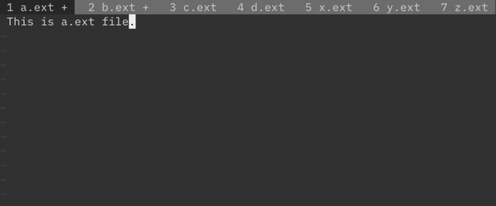 When you execute command above vim will open a screen with tabs in your terminal starting with a.ext tab and ending with z.ext tab.